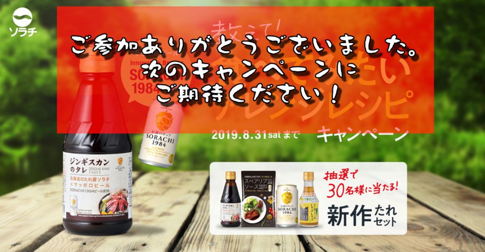 ②ソラチ公式アカウント内該当の投稿のコメント欄に、「SORACHI1984使用 ジンギスカンのタレ」を使ったアレンジレシピ3品のうち、食べてみたいレシピを一つ選んで投票(コメント)したら応募完了