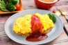 - スクランブルエッグまたは薄焼きにした卵をチキンライスの上に乗せ、ケチャップがわりに【ポークチャップソース】をかけたら完成!