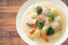 - 水を加えて、アクを取りながら材料が柔らかくなるまで中火で約15分煮込む。